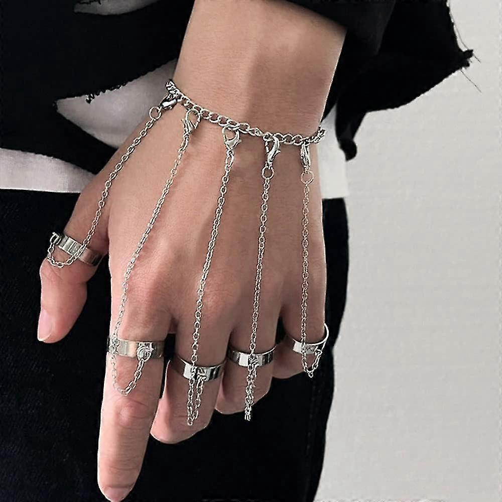 Punk Chain Tassel Bracelet With Slave Finger Rings Gothic Chain Hand Harness Hip Hop Rings Hand Chain Kurapika Chain Bracelet For Women Girls