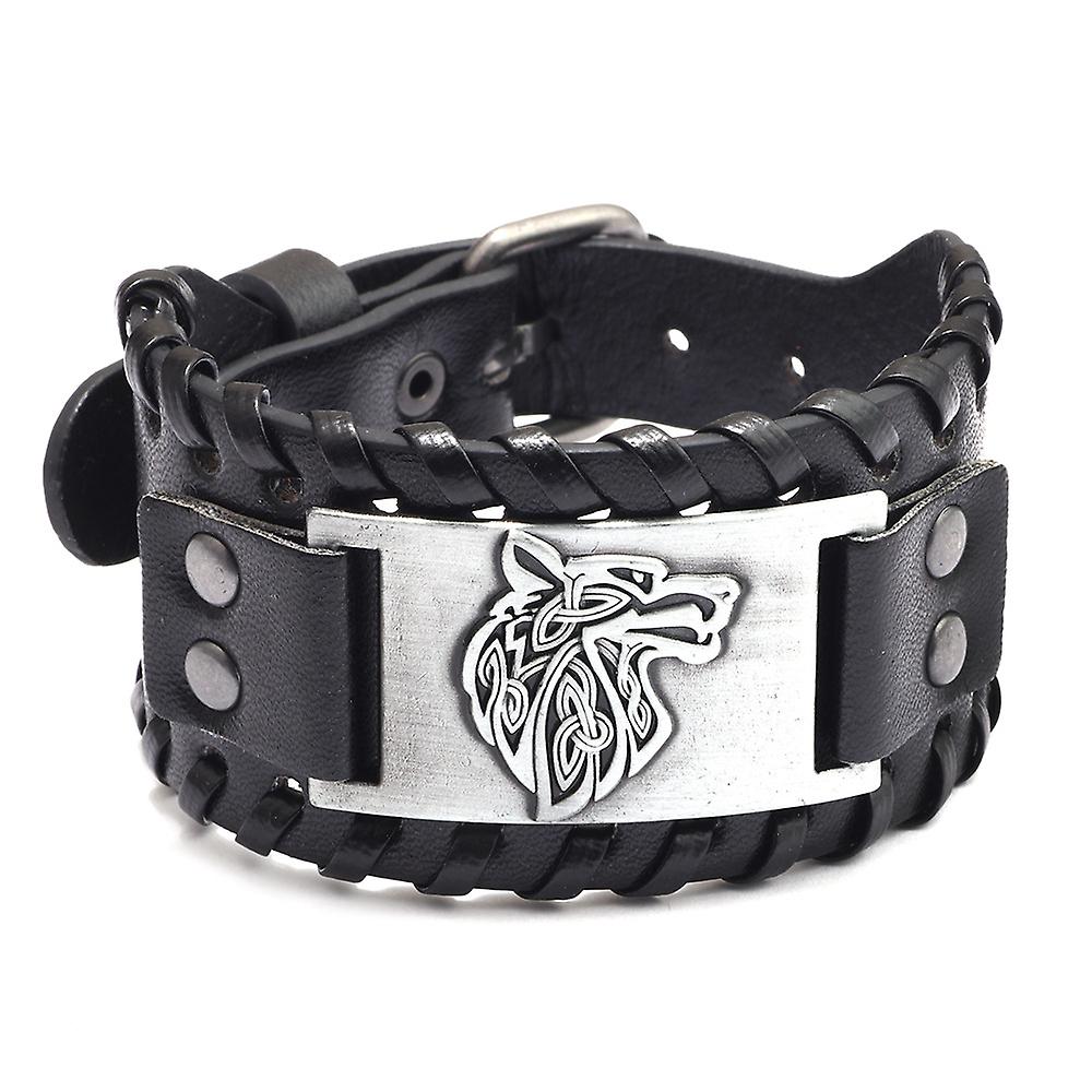 Punk Men Wide Bangle Accessory Wolf Head Charm Bracelet Leather Weave Adjustable Wristband Friendship Jewelry