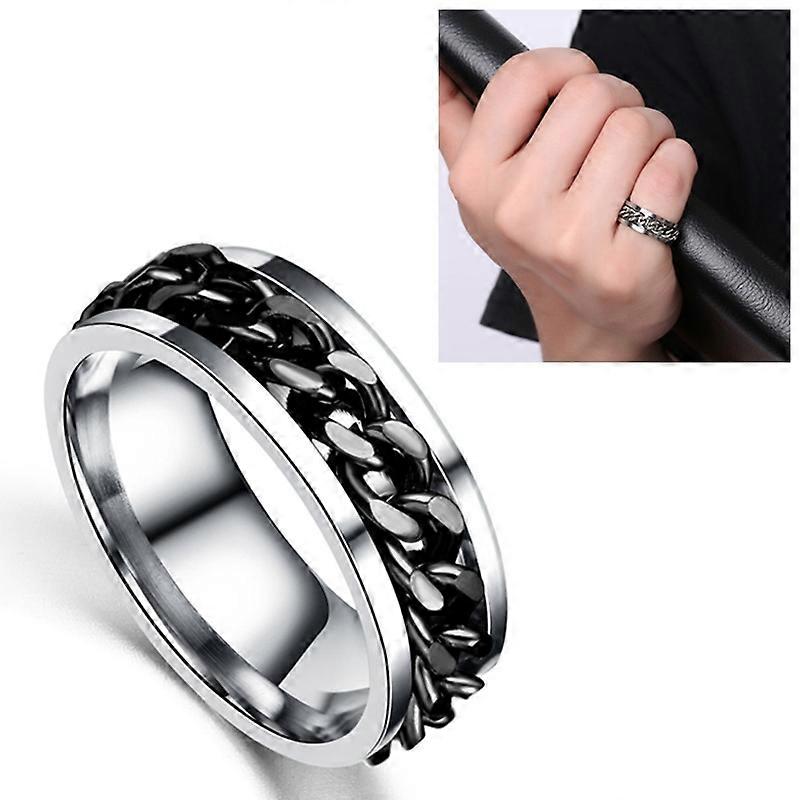 Punk Rock Stainless Steel Rotatable Chain Rings, Ring Size:10(Black)