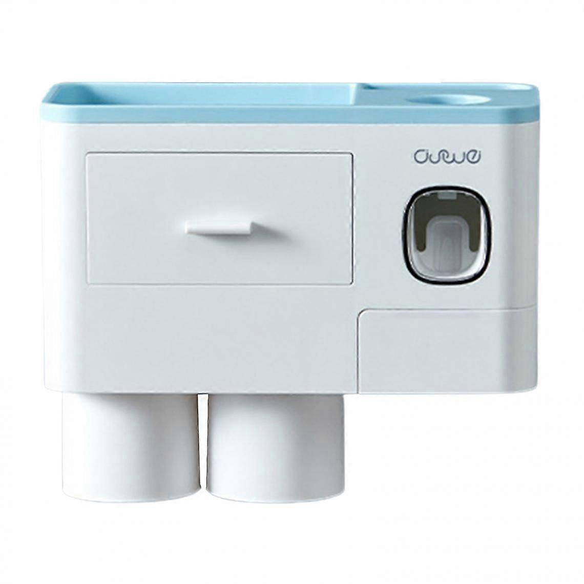 Punch Free Wall Mounted Toothbrush Holder 3 Cup Bathroom Top Shelf Blue