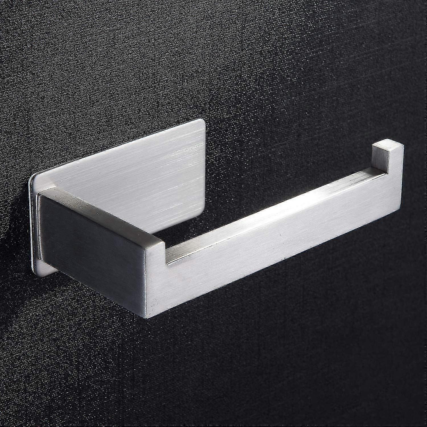 Material: Constructed of SUS-304 stainless steel and brushed finish. Modern Design: This self adhesive toilet roll holder has a beautifully simple square design, sturdy and easy to hold the paper roll, ideal for bedrooms, bathrooms, and closets. Super Self-Adhesive: The toilet paper holder sticky backing is adhesive tape, strong adhesiveness and waterproof. Installation without Drilling: Easy to install, just peel off film of adhesive pad and stick it on the smooth wall surface, then press for several seconds. Use Tips and Attention: The loo roll holder is not suitable for wall paper or painted wall. Rest it for 24 hours to ensure better adhesive before hanging things on it.
