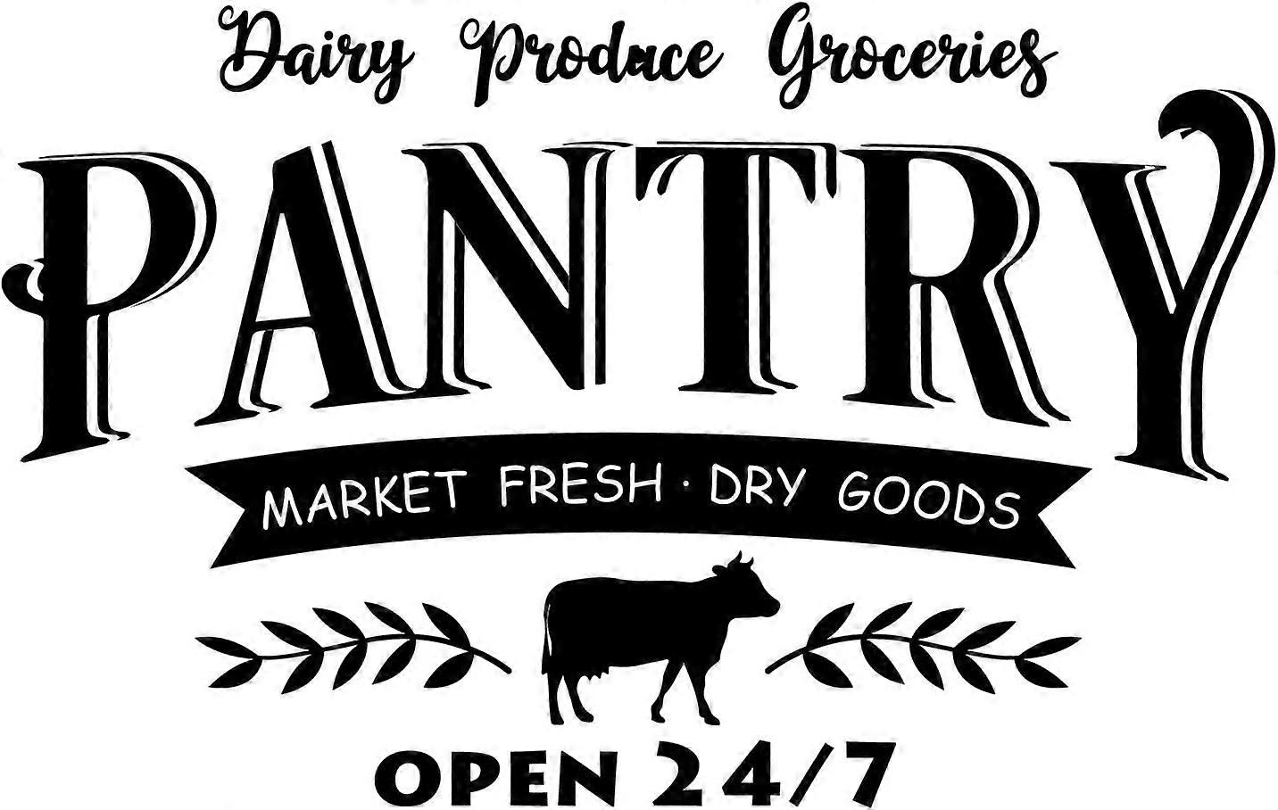 Pantry Wall Decals Dry Goods Market Fresh Stickers Open 24/7 Glass Door Vinyl Art Lettering Wall Decal Sign Daily Produce Groceries DIY Art for Kitche