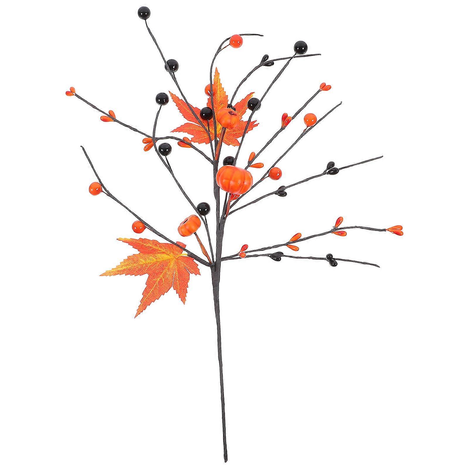Pumpkin Maple Leaf Adorn Home Decor Fake Maple Leaf Branch Autumn Harvest Orange 1Pack