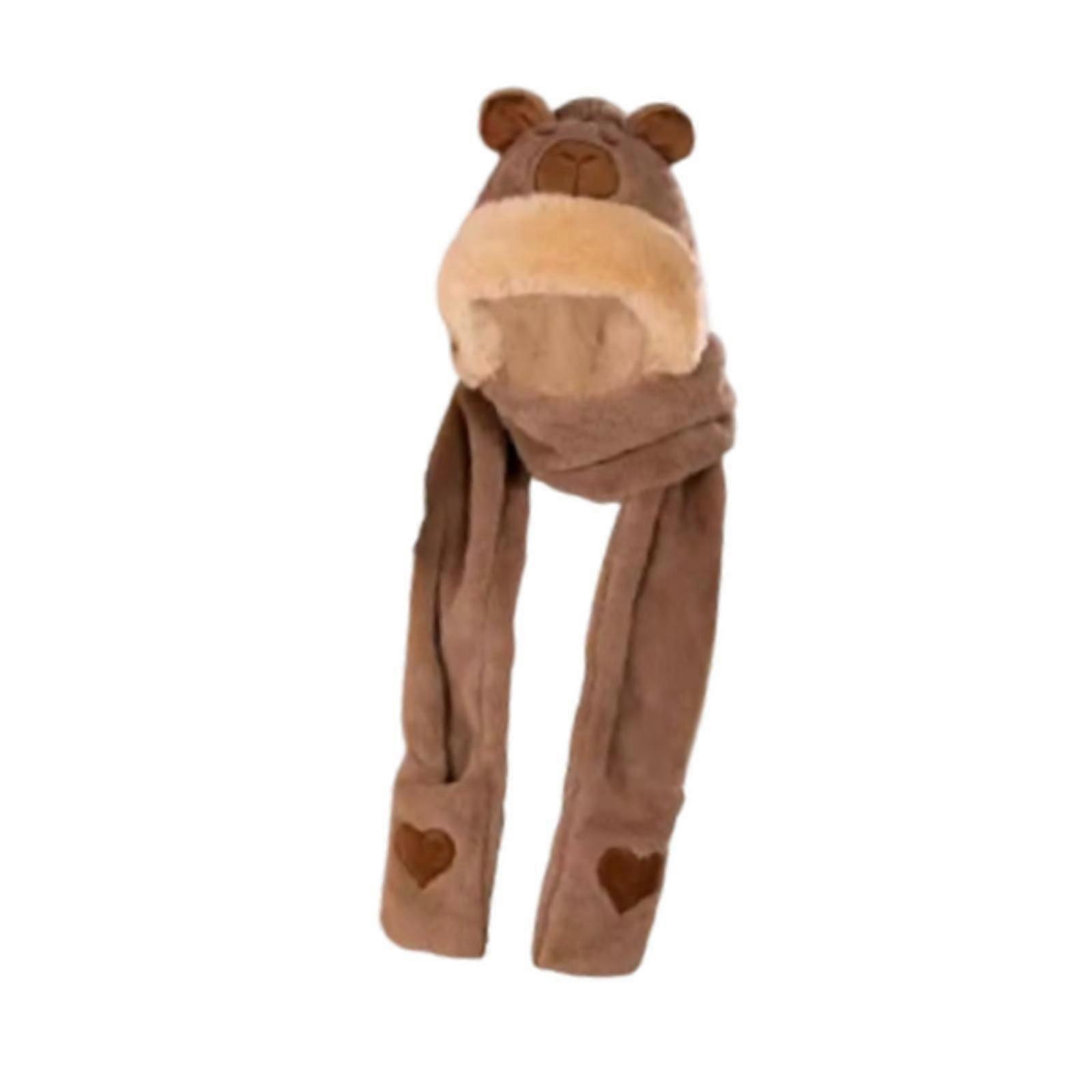 Hoodie Hat Scarf Gloves Set Comfortable Cute Warm Winter Hat for Women Girls Dark Brown