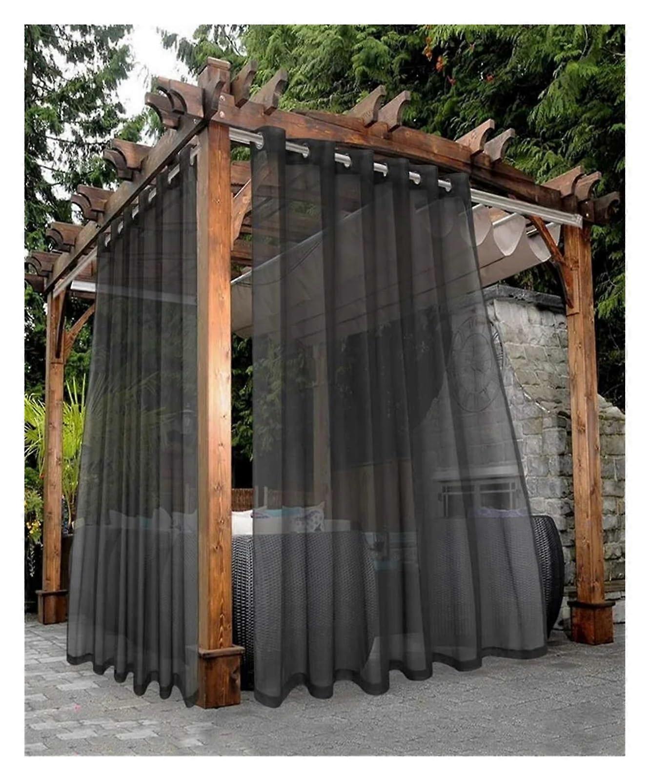 Curtain for pergola, waterproof transparent with eyelets for outdoor area (Black, Grommet TOPW97 X H241)