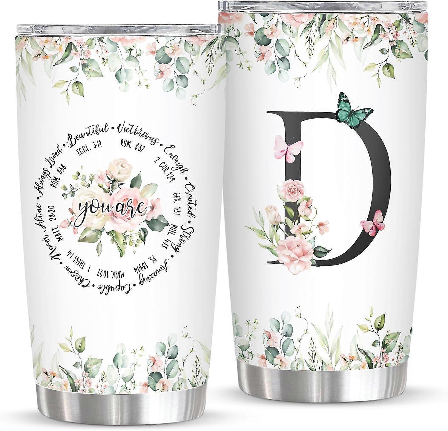 Personalized Initial D Tumbler 20oz, Monogrammed Gift for Women Birthday Mothers Day Religious Gift, Personalized Christian Gift for Women Initial Cof
