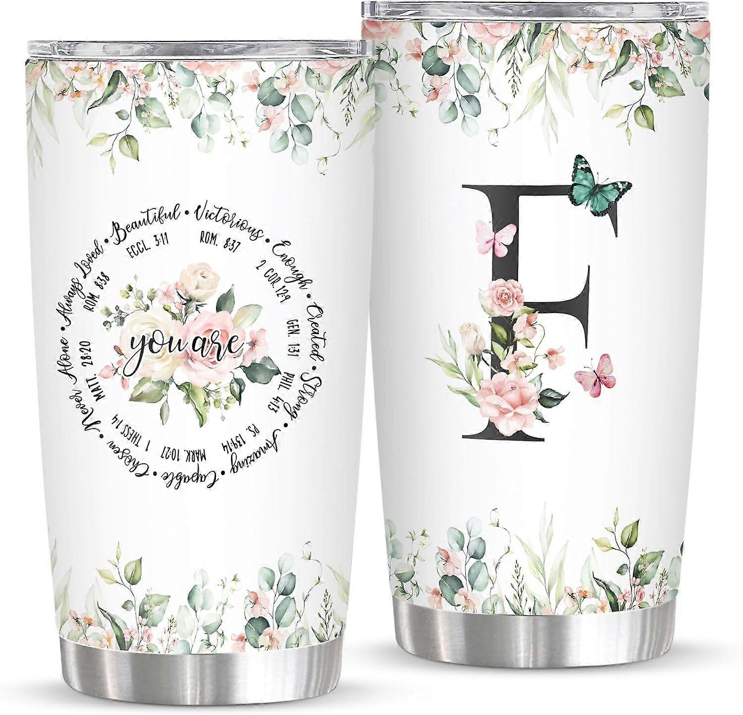 Personalized Initial F Tumbler 20oz, Monogrammed Gift for Women Birthday Mothers Day Religious Gift, Personalized Christian Gift for Women Initial Cof
