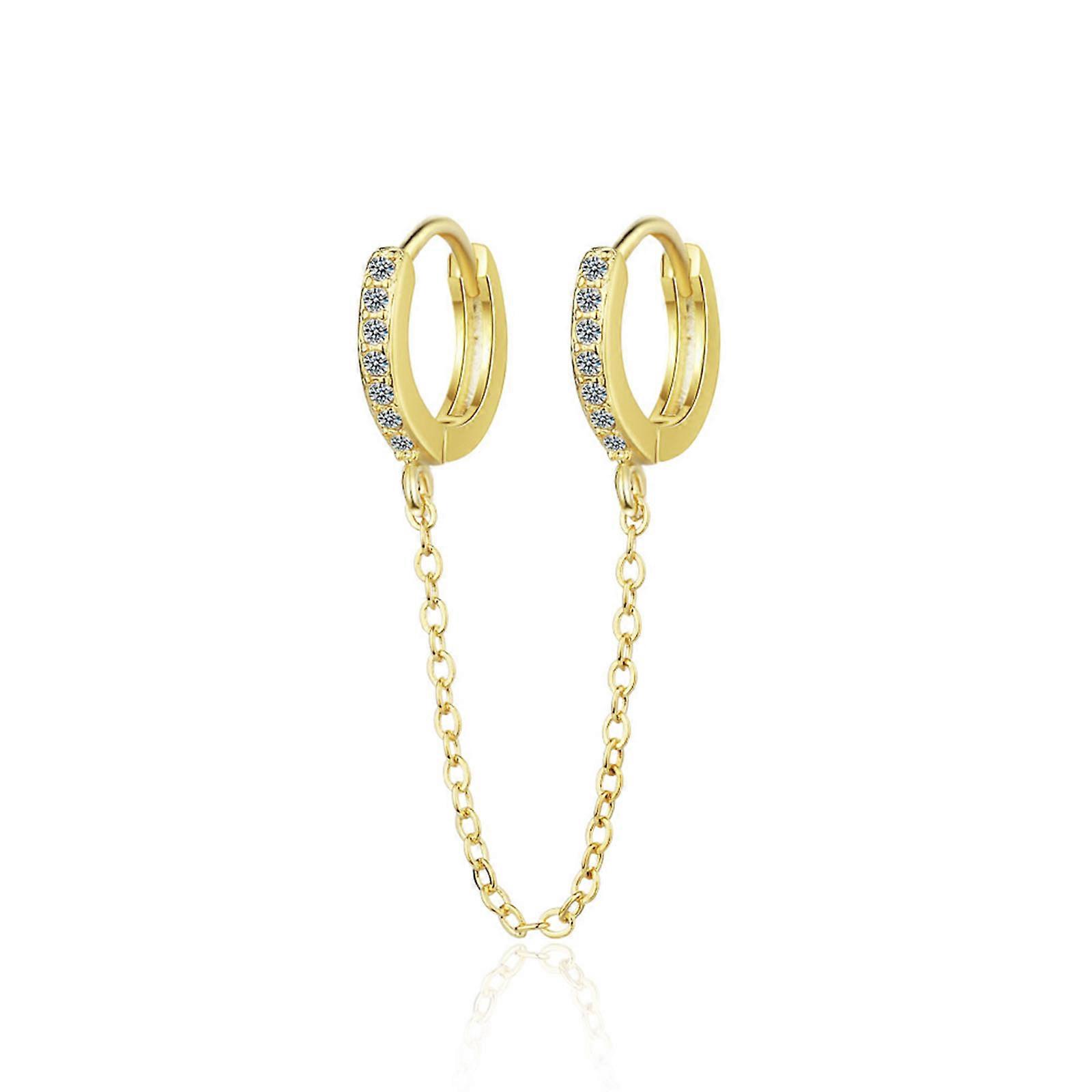 Two Holes Connecting Earrings Piercing Chain Hoop Earrings Huggie Wrap with Chain Dainty Earrings Jewelry for Women Girl