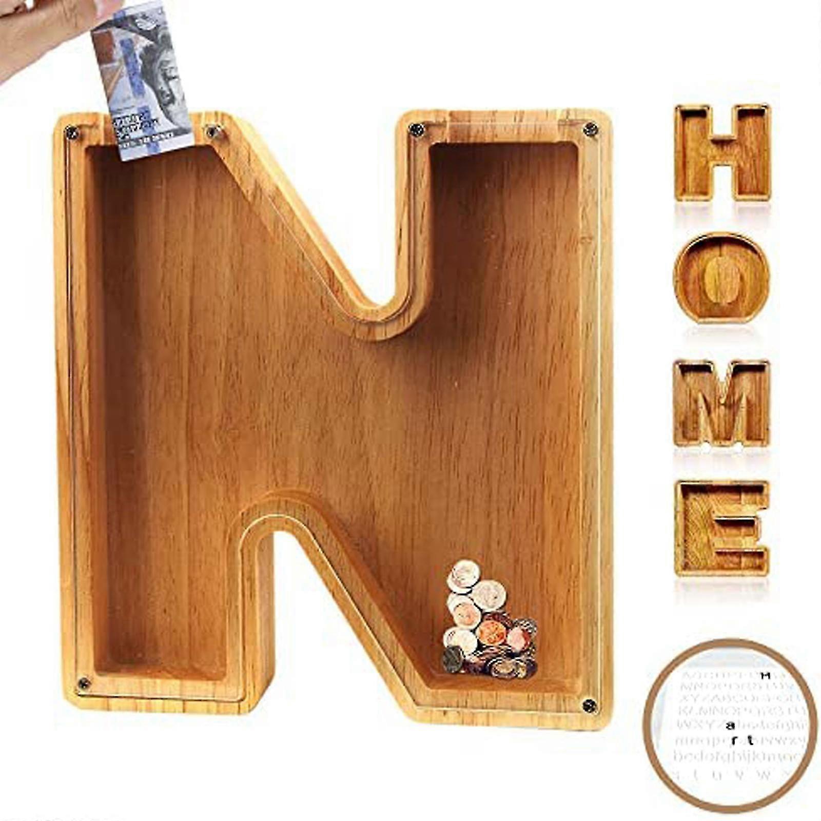 Personalized Wooden Letter Piggy-bank, Wooden Money Box For Kids Boys Girls