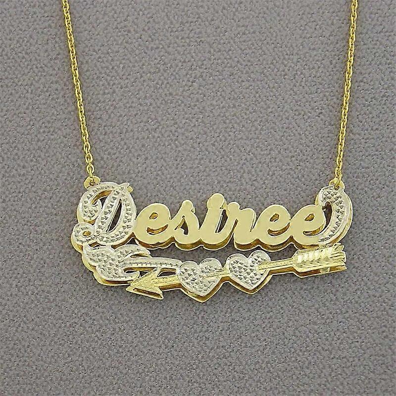 Personalized 3D Cupid's Arrow Hearts Pendant 14K or 18K Gold Name Charm Jewelry