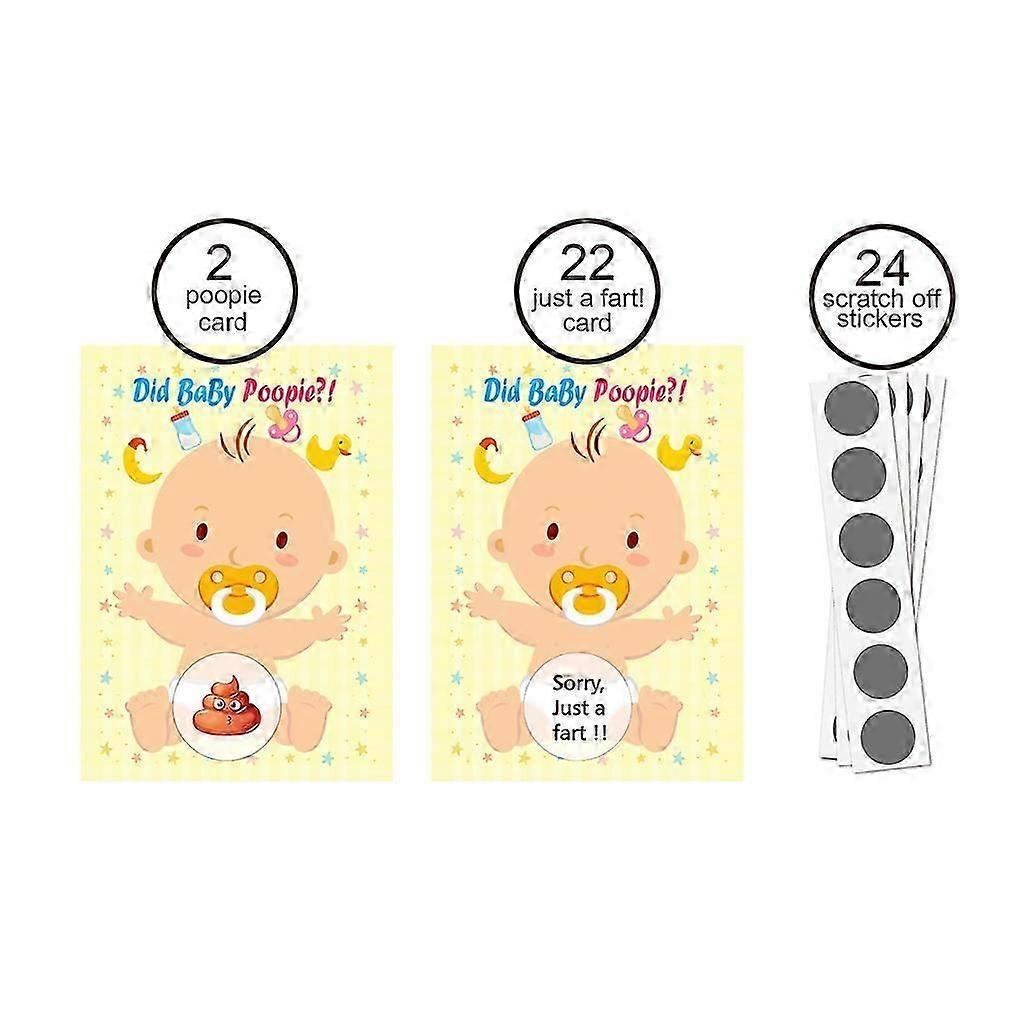 Party Hearty Guessing Games 24 Raffle Cards Poopie Fart Scratch off Lottery Gender Neutral Activity for Door Prizes