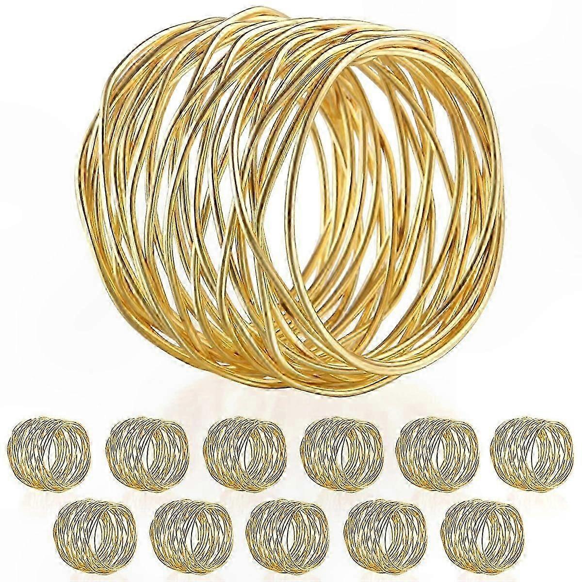 The napkin rings are made of metal with a polished finish and twisted wire mesh design that adds an elegant touch to table settings. These napkin rings catch the light beautifully, enhancing the ambiance of any meal. The wire mesh detail contributes a refined accent to a well-arranged table. They are decorative pieces that elevate the look of any tabletop.Exquisite Table Decoration: Beautiful napkin rings can dress up your tabletop for formal occasions or casual gatherings, adding a stylish accent to your table setting. These napkin rings are suitable for various events such as weddings, parties, picnics, holidays, Thanksgiving, New Year, Christmas, receptions and more. They help keep your table setting organized by holding napkins securely in place and preventing them from slipping or falling.Material: Metal Color: Gold Package Contents: 12 x Gold Napkin Rings Note: Light reflection and different display screens may cause slight variations in the color of the item shown in the picture compared to the actual product. Measurement may vary by 1-3 cm due to manual measurement.