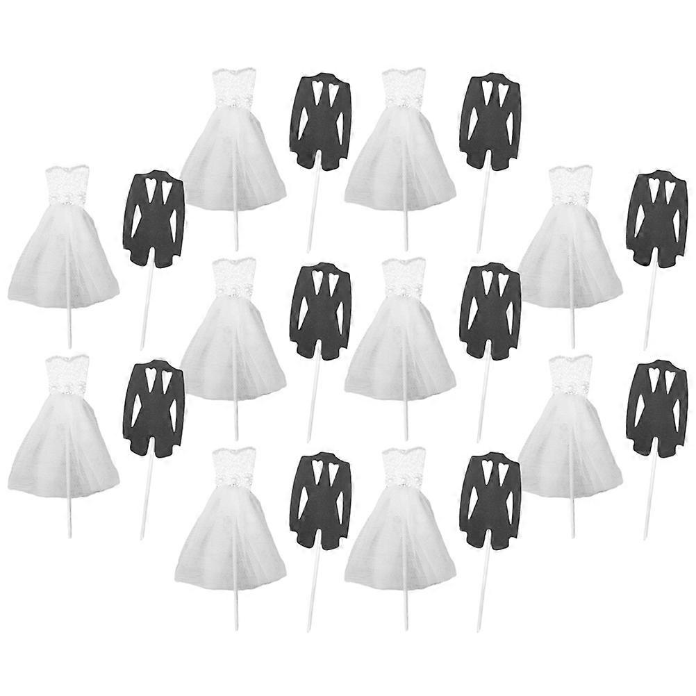 Assorted Color 20Pcs Wedding Cake Decorations Suit And Wedding Dress Shape Cupcake Toppers For Party Celebrations