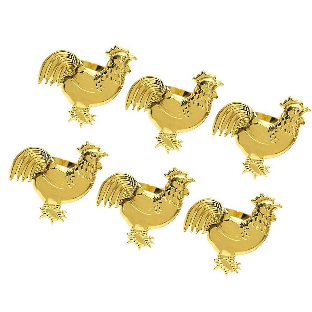 Delicate Napkin Buckles Rooster Style For Parties 5.70X5.70X5.00CM Wear-Resistant Golden Napkin Holding 6Pcs