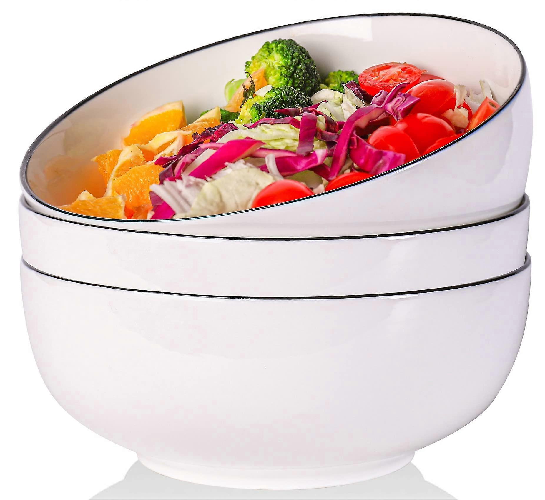 3 Set Large White Bowls for Party Eating 8 Inch 60 oz