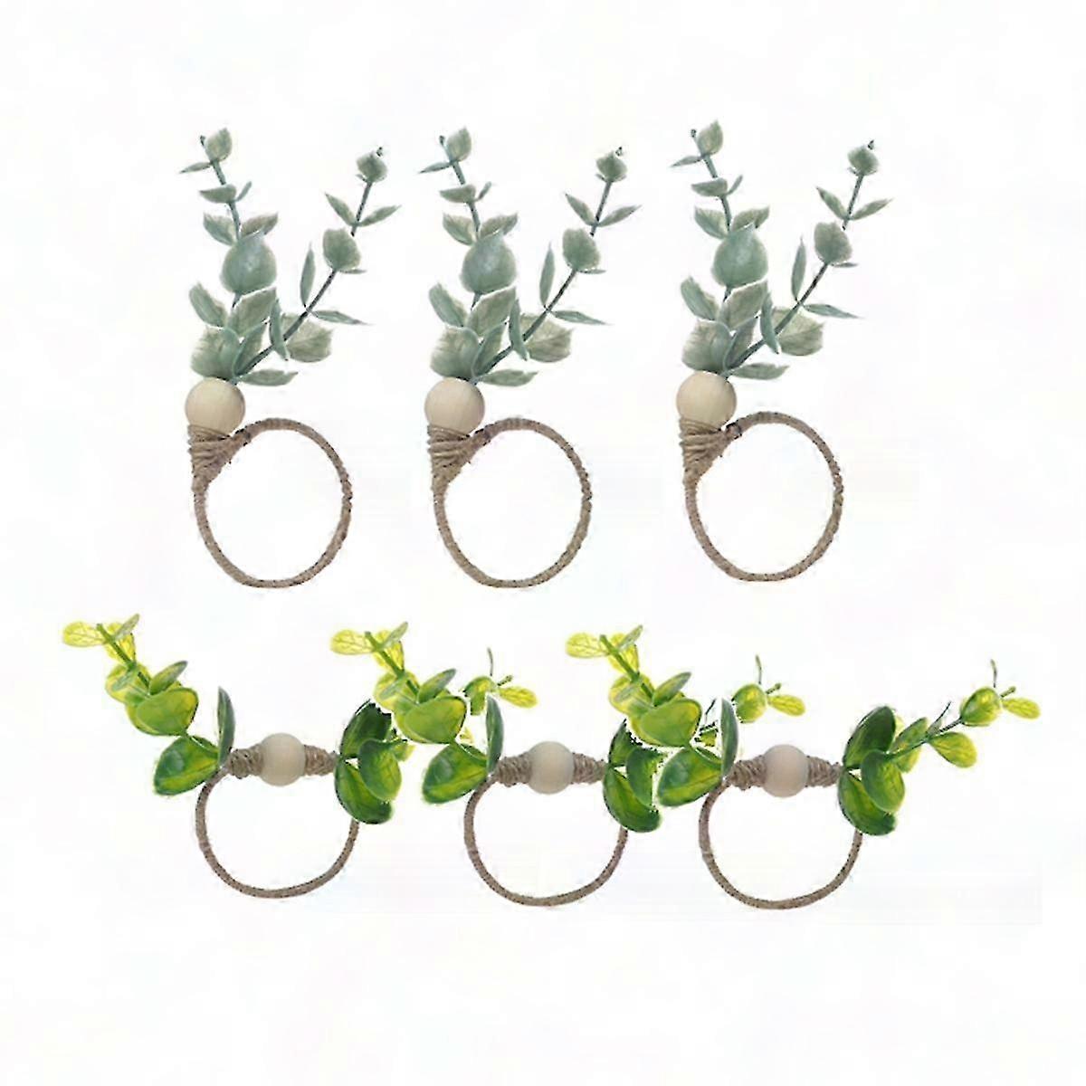 6PCS Wooden Boho Napkin Rings with Eucalyptus for Party Christmas Table Decor