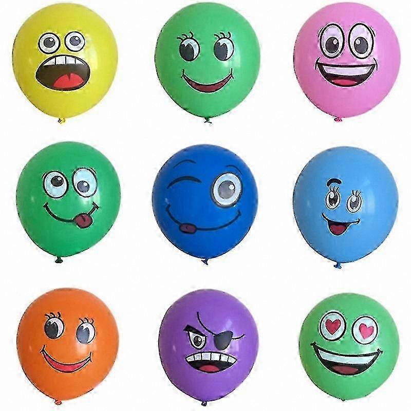 12 Inch Latex Balloons with Emoji Design for Party Decorations (100pcs Mixed Colors)