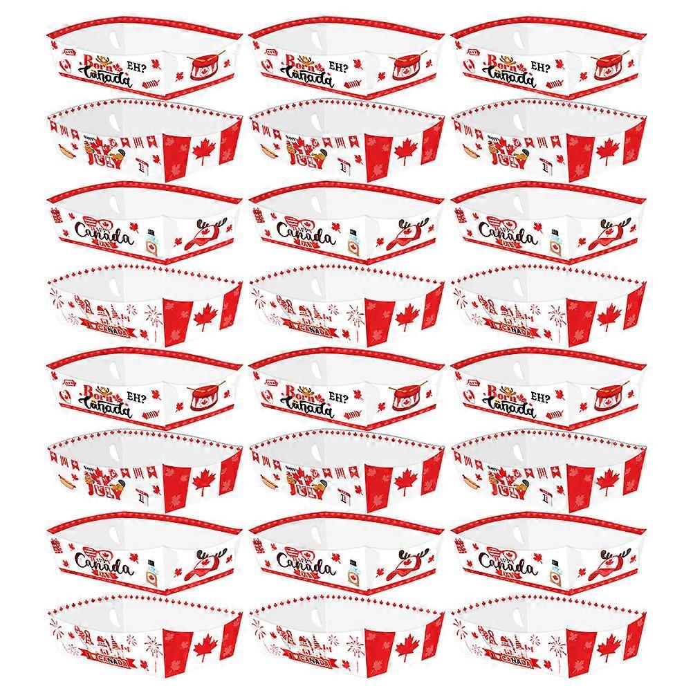 Party Food Boats Snack Tray Carnival Decorations Take Out Basket Hold Snacks Eco-Friendly Cardstock Canada Day Theme 24Pcs