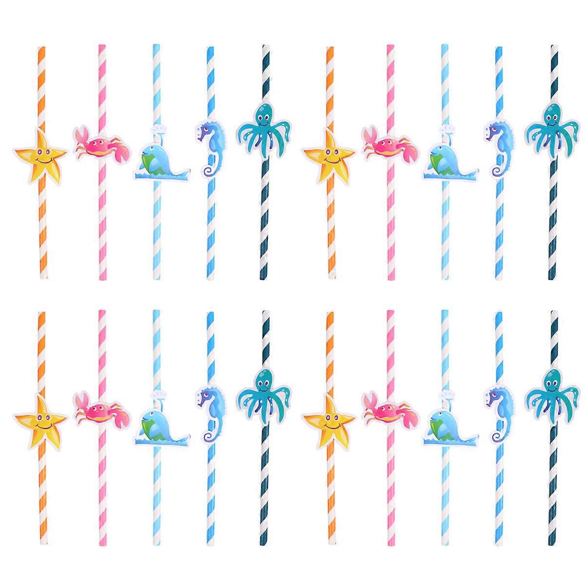 Party Paper Straws Hawaii Theme Animal Decoration Straw Multi-Colored 19.7x0.6Cm For Theme Party 50Pcs