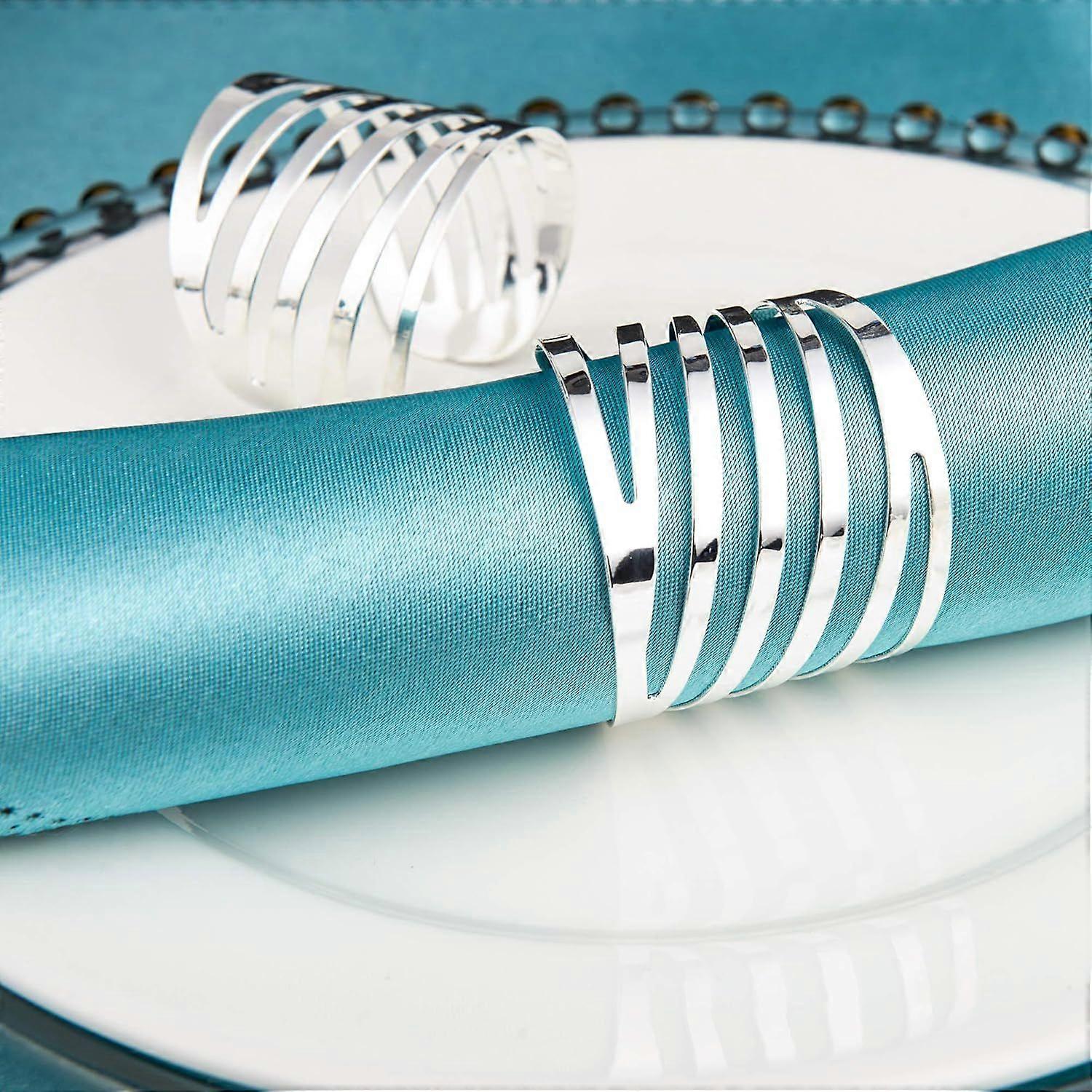 About this item Napkin Rings Material: Made of plated metal, very sturdy and durable, napkin ring surface with the long lasting shine and perfect for table decor. Metal Napkin Rings Measures: 1.96 inch X 1.96 inch diameter / ( 5 x 5 cm) Elegant Design: Opening napkin rings design, simple and practical. metal napkin rings go with different colored and patterns napkins, make you dinner table looks more dazzling. Multipurpose: The Silver Napkin Rings are perfect for Daily Dinner, Candlelit Banquet, Wedding Centerpieces, Birthday Party, Restaurants, Cafes, Valentine's Day, Christmas and all kinds of Festival. Great Gift Choice: This napkin ring holder is exquisite and practical present for your family and friends, especially the Housewarming, Wedding Birthday Party Festival Christmas gift.