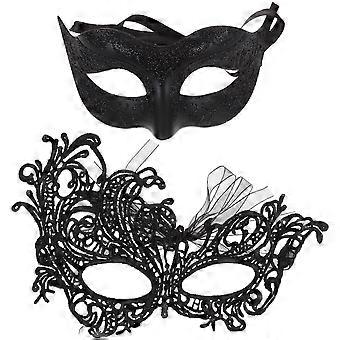 Party Mask Cosplay Mask Mysterious Design Half Face Black Plastic Lace 2Pcs