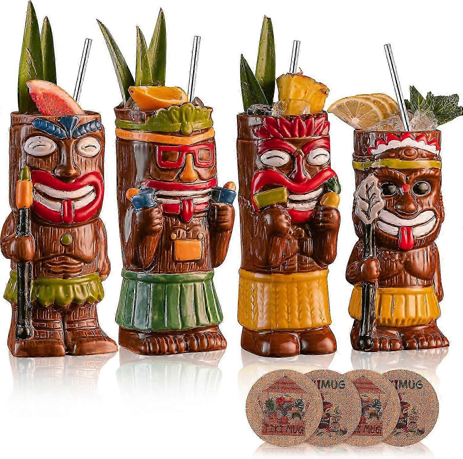 4 Set Exotic Cocktail Tiki Mugs for Party Tropical Tiki Bar 2025