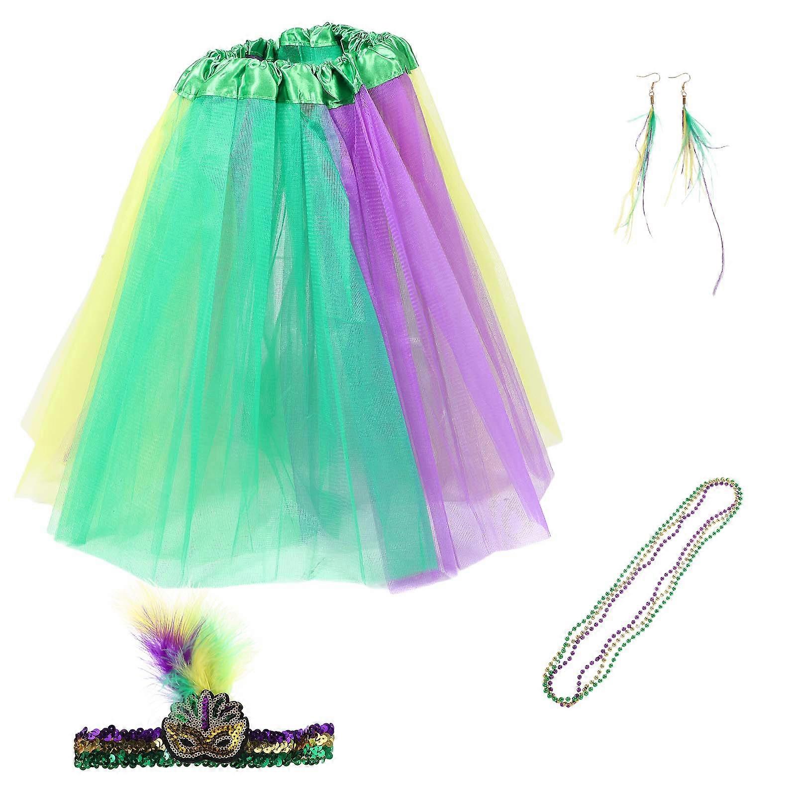 Carnival Costume Mask for Party 1Set Mardi Gras Accessory Tutu Skirt and Beads