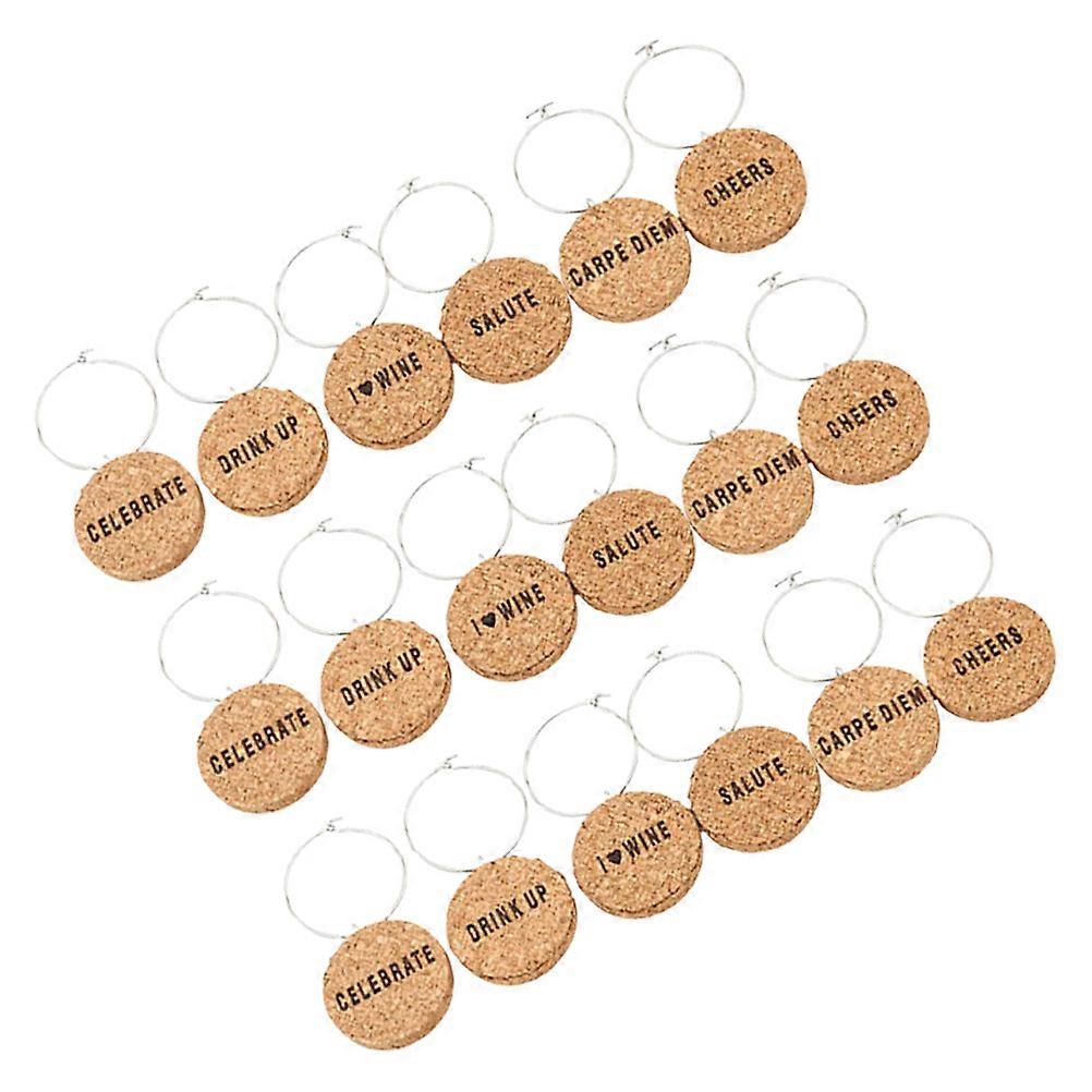 Wine Glass Charms For Parties Cork And Synthetic Material Khaki Round Drink Identifier 18Pcs