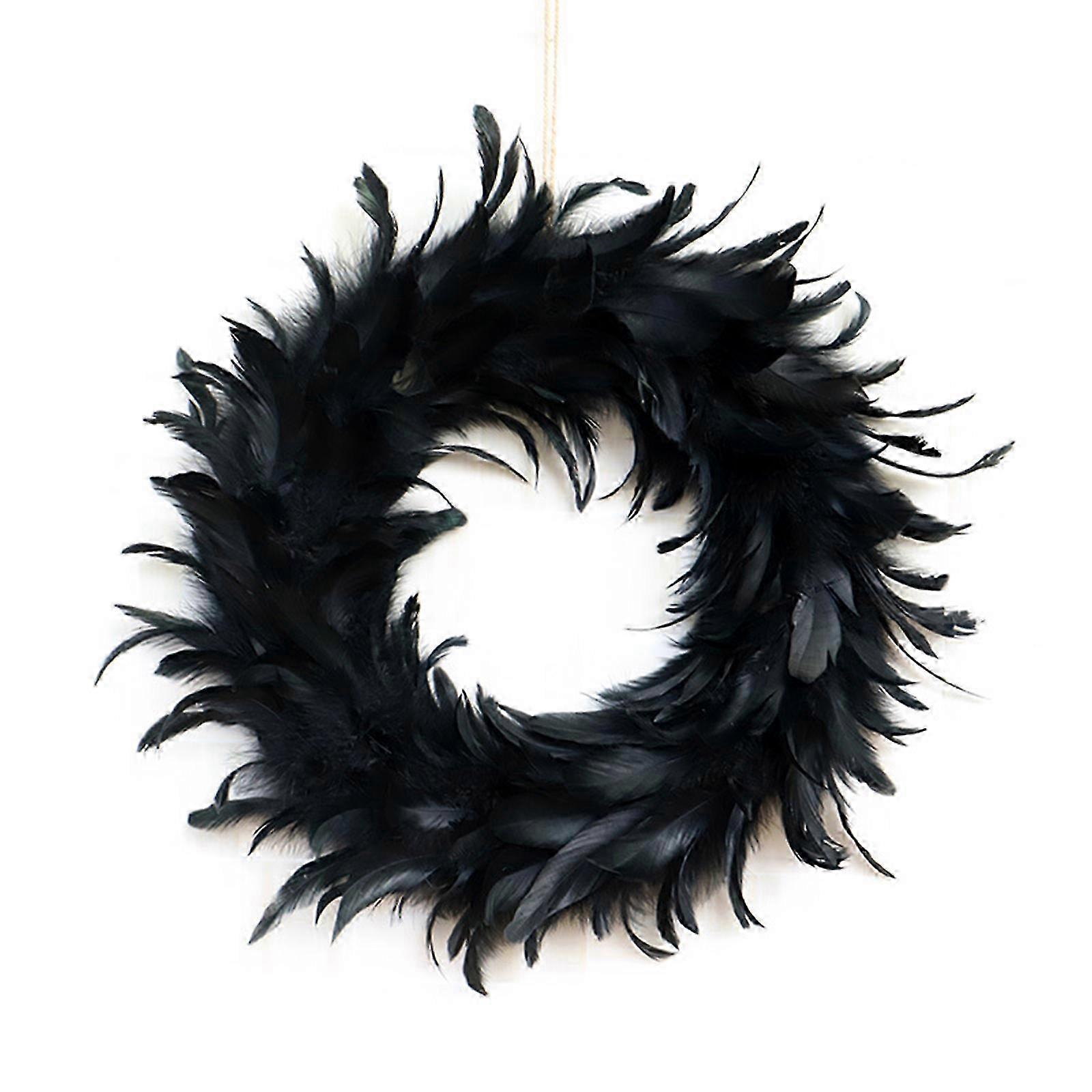 40cm Halloween Black Feather Wreath for Party Decor 2025