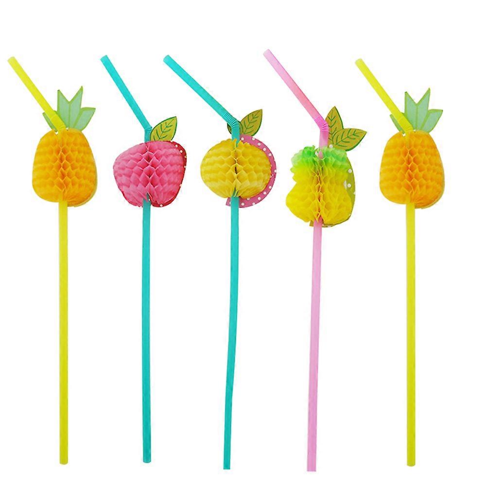 Party Drinking Straws Fruits Honeycomb Ball Straw Luau Party Assorted Color 50Pcs