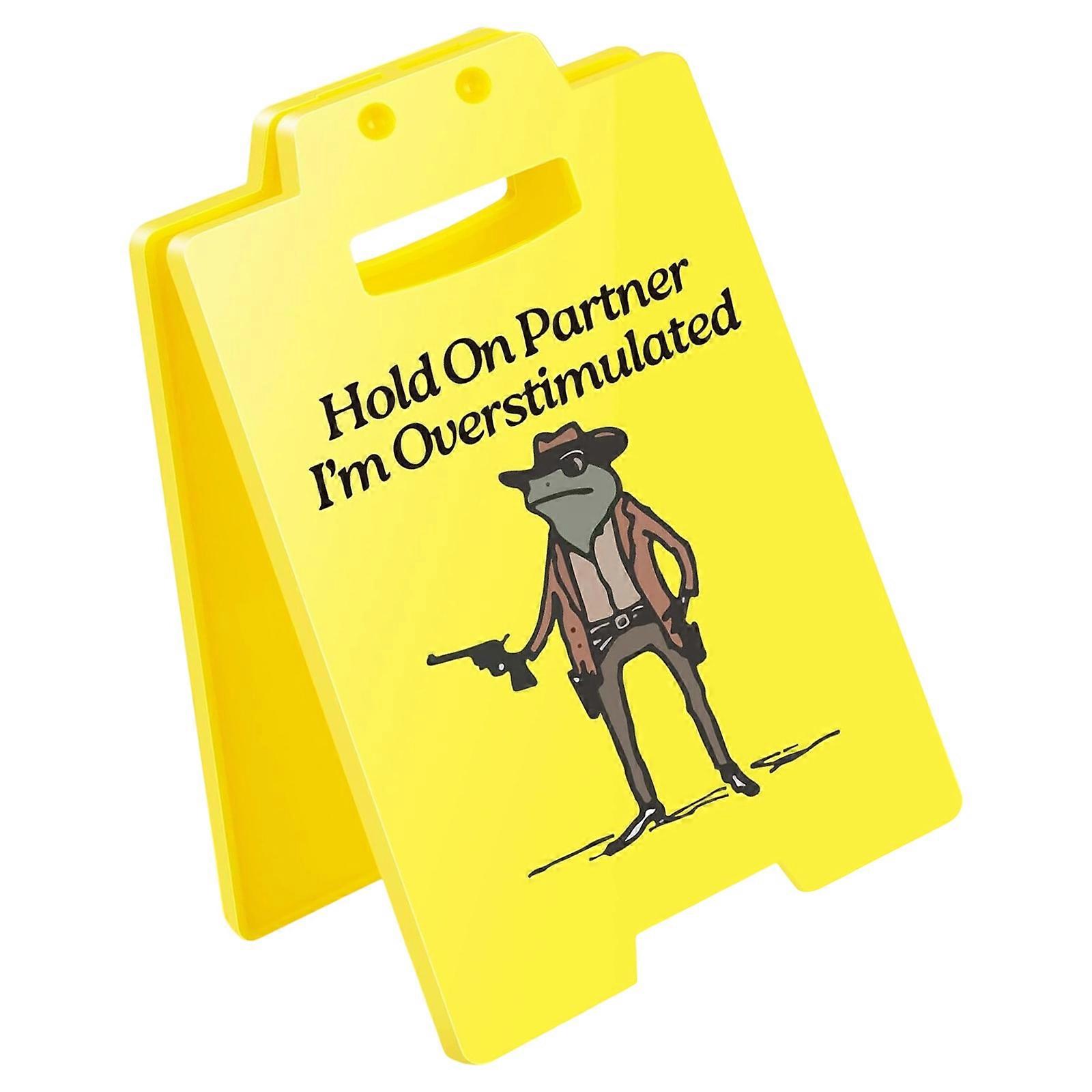 Hold on Partner I'm Overstimulated Desk Signs,Funny Prank Gift Humor Office Desk Warning Signs for Stress Relief Multicolor