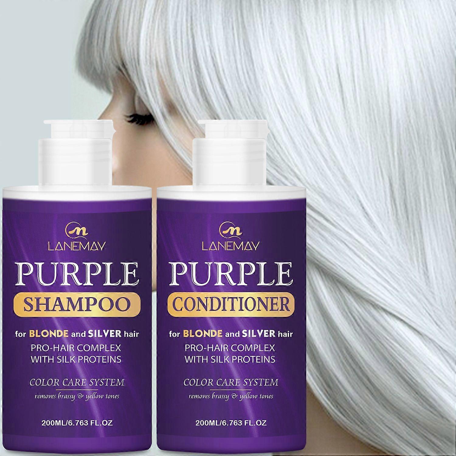Purple Shampoo and Conditioner for Blondes - Enhance vibrant, cool-toned hair with our Purple Shampoo and Conditioner Set, specifically formulated to combat brassiness and yellow undertones. Ideal for blonde, bleached, or brown-highlighted hair. Moisture Rich Formula - Our Purple Shampoo and Conditioner Set for blonde hair is specially formulated to provide a gentle cleanse without stripping away your color. Safe for daily use, it wont dry out your hair, keeping it soft, shiny, and hydrated. Deep Nourishment & Hydration - Infused with nourishing ingredients, this purple shampoo for blonde hair repairs and strengthens, preventing breakage and adding softness. Ideal for chemically or color-treated hair, it helps to keep blonde tones luminous and vibrant. Blonde Purple Shampoo - our best purple shampoo for brassy hair, acts as a powerful toner for blonde hair while also working as an effective purple shampoo for highlighted hair. Blonde Shampoo and Conditioner Set - Everything you need to maintain bright, beautiful color. This set nourishes and protects your hair while enhancing its vibrancy. Perfect for both blonde and highlighted hair, our purple shampoo for bleached hair helps preserve color and boost shine.
