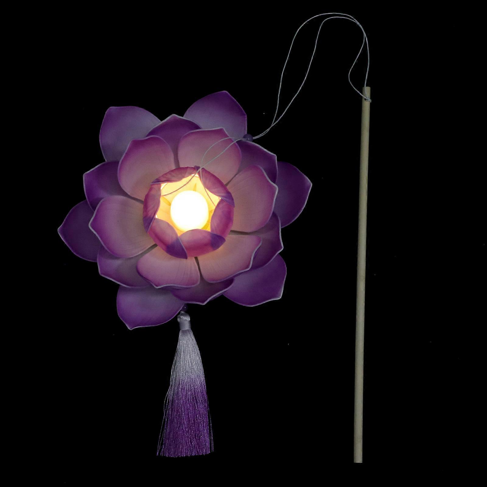 Purple Chinese Style Lotus Lamp Handheld LED Decor for Photography Scene and Festive Atmosphere 12.5x10 inches