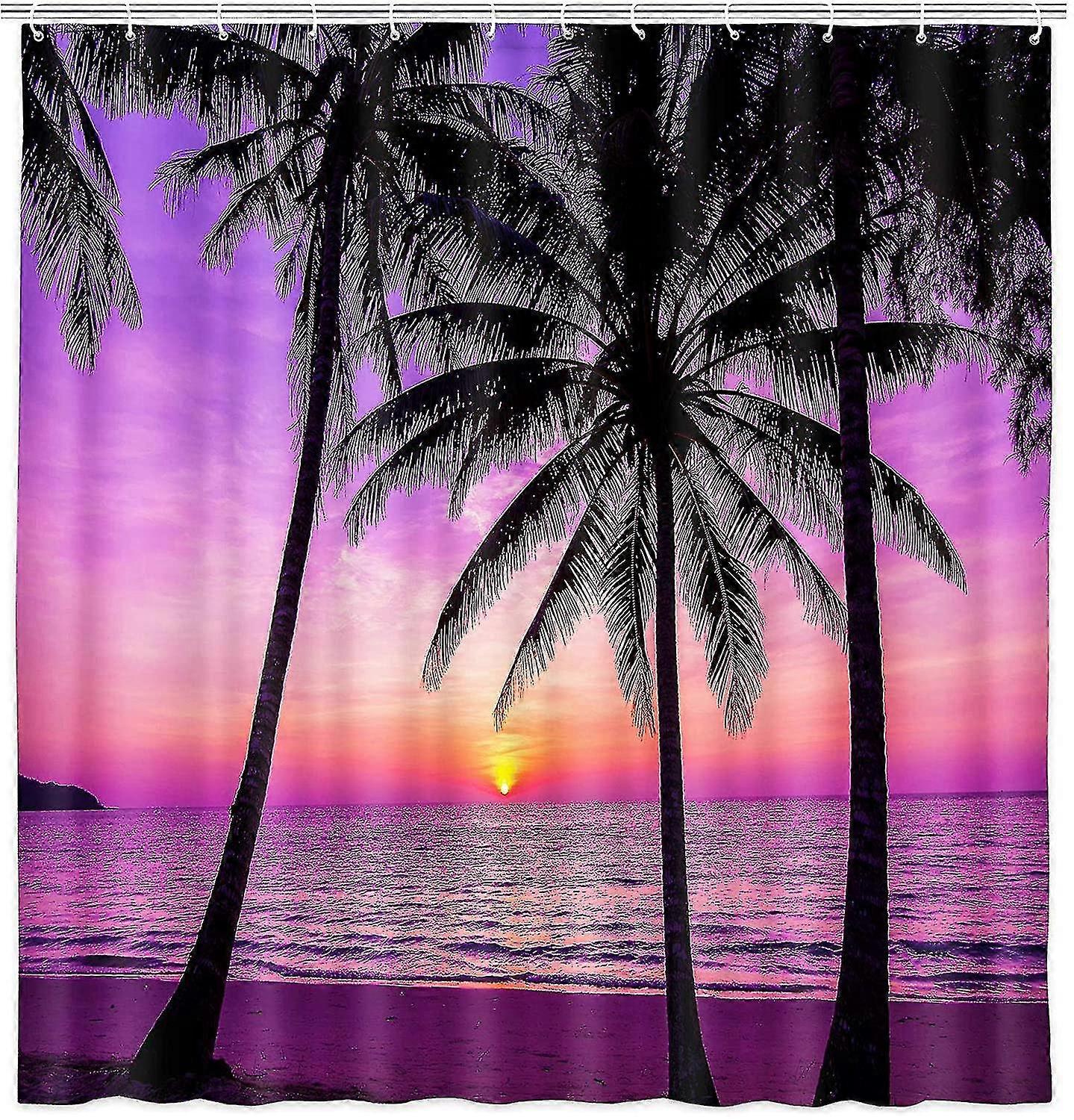 Purple Beach Sunset Shower Curtain Tropical Palm Tree Ocean Beach Nature Shower Curtains For Bathroom Waterproof Fabric Bathroom Decor With Hooks, 72x
