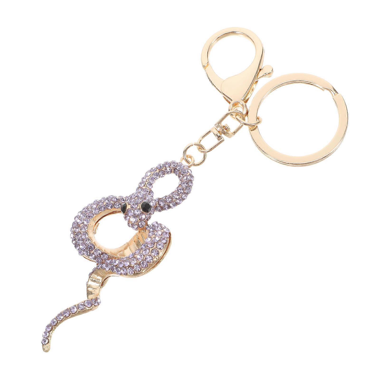 Purple Rhinestone Snake Keychain Chinese Zodiac Pendant For Bags And Handbags 1Pack