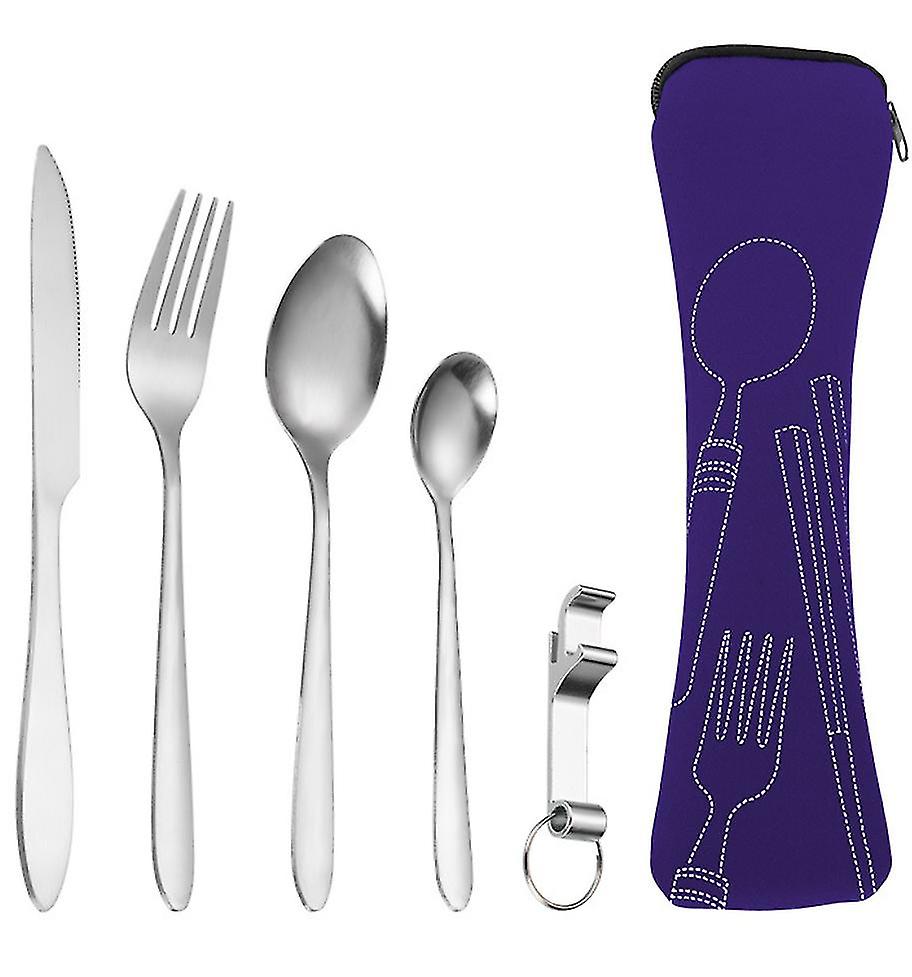 Purple 5 Piece Stainless Steel Portable Cutlery With Package Az15189