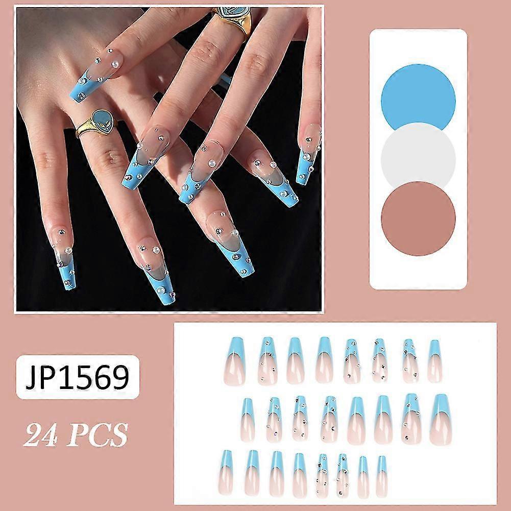 Pearl Decor French Style Blue False Manicure With Harmless And Smooth Edge Nails Jelly Glue Model