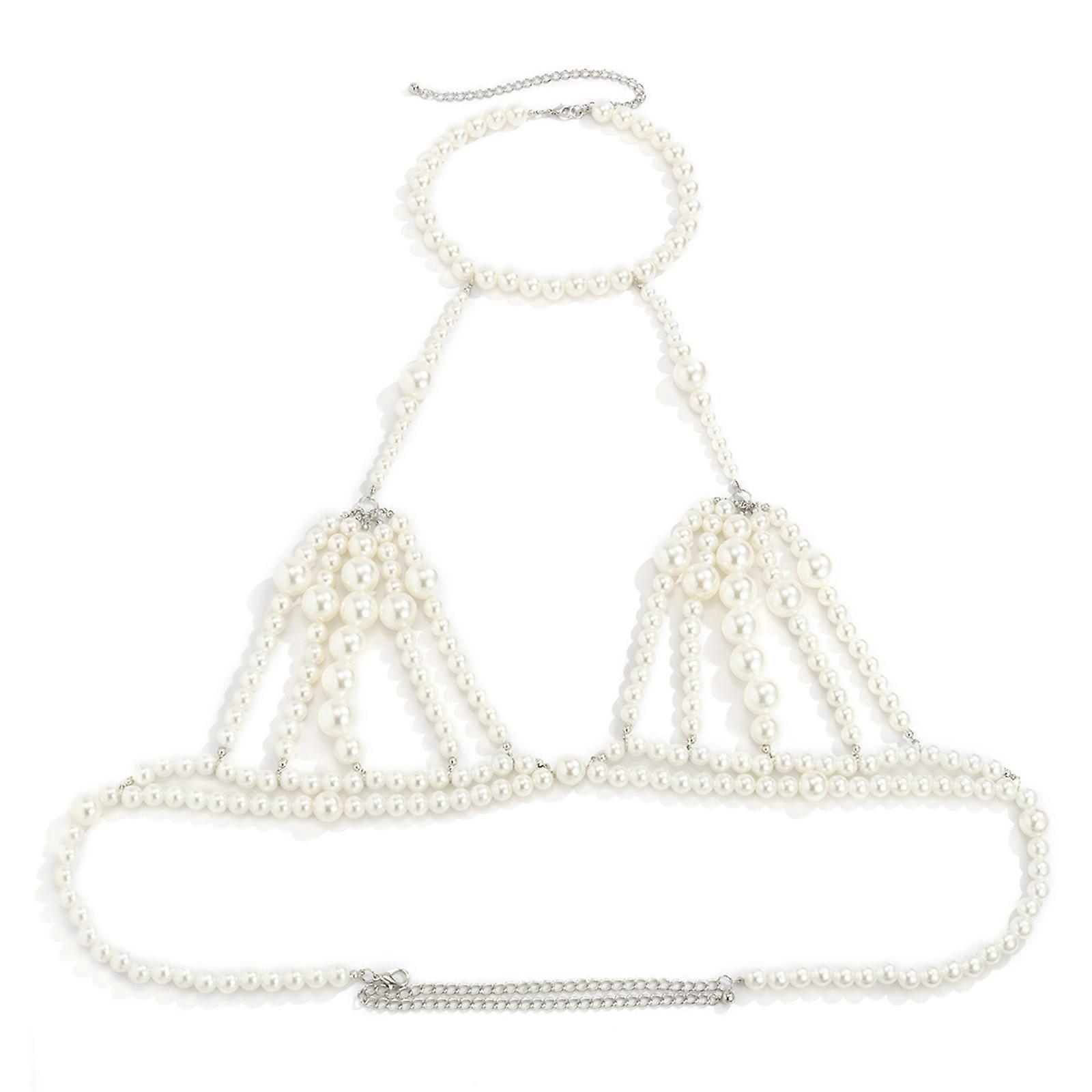 Pearl Waist Chain Women Layered Beads Belly Chain Belt Streetwear Sexy Chest Body Chains Summer Fashion Body Jewelry