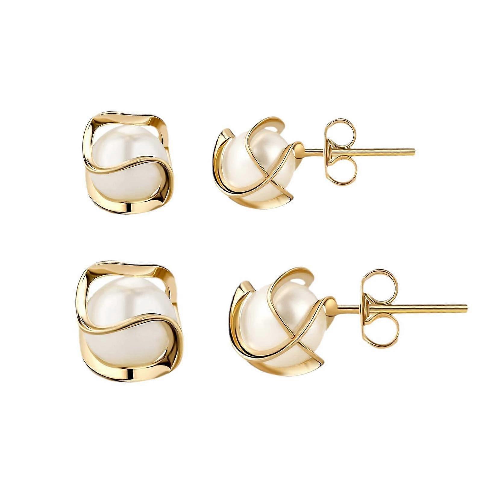 Pearl Stud Earrings 14K Gold Plated Caged Stud Earrings Pearl 6/8mm Earring Jewelry Gifts Modern Fashion Jewelry for Women,