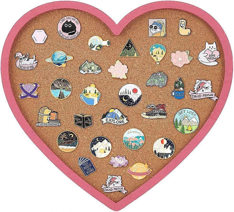 Pearl Pink Heart Pin Cork Board 11.8x10.7inch Bulletin Display Board Wall Mounted Cork Board with Pink Frame for Brooch Pin Storage Display Office Hom
