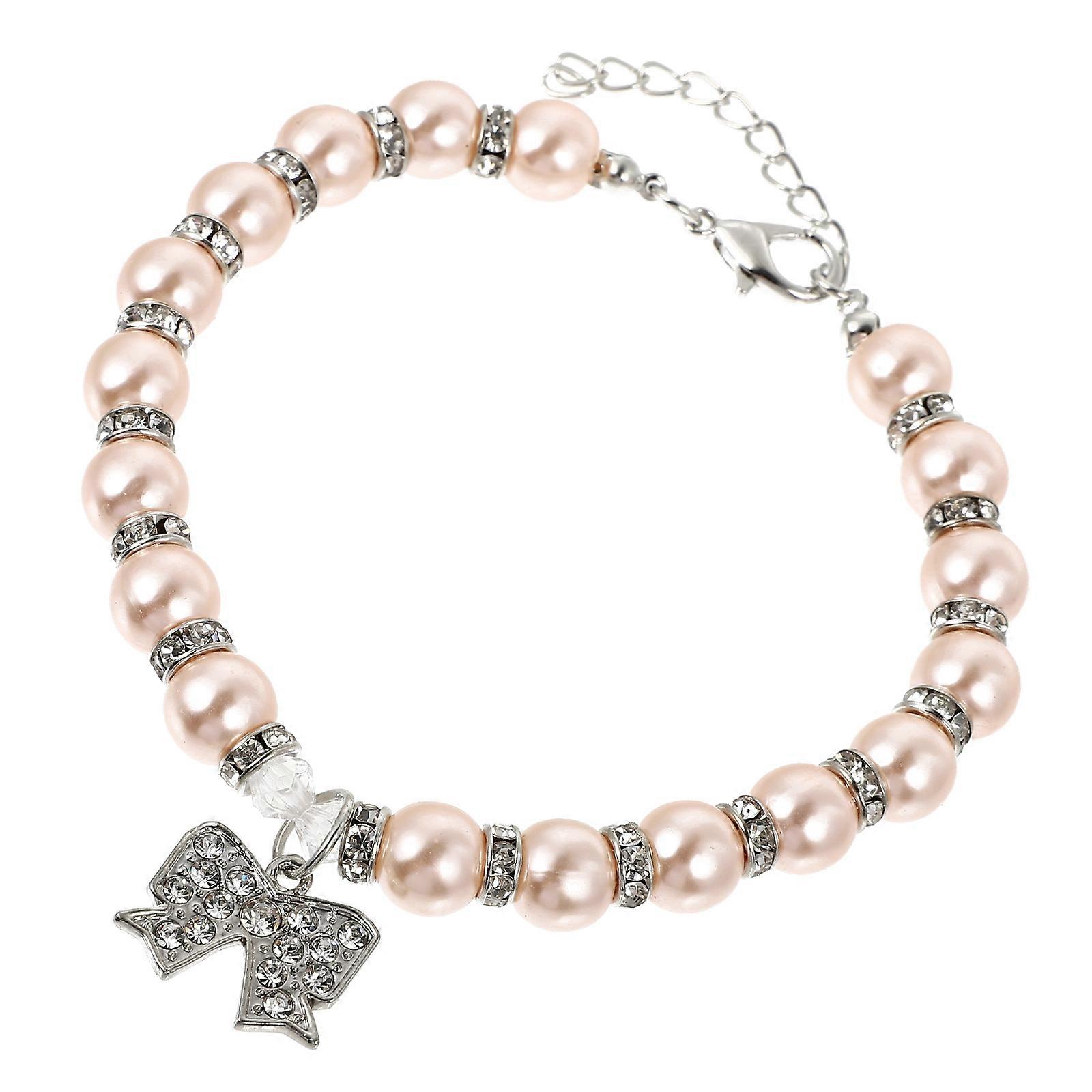 Pearl Pet Necklace Alloy Bowknot Dog Necklace Pink Metal Durable for Weekend Party 1Set