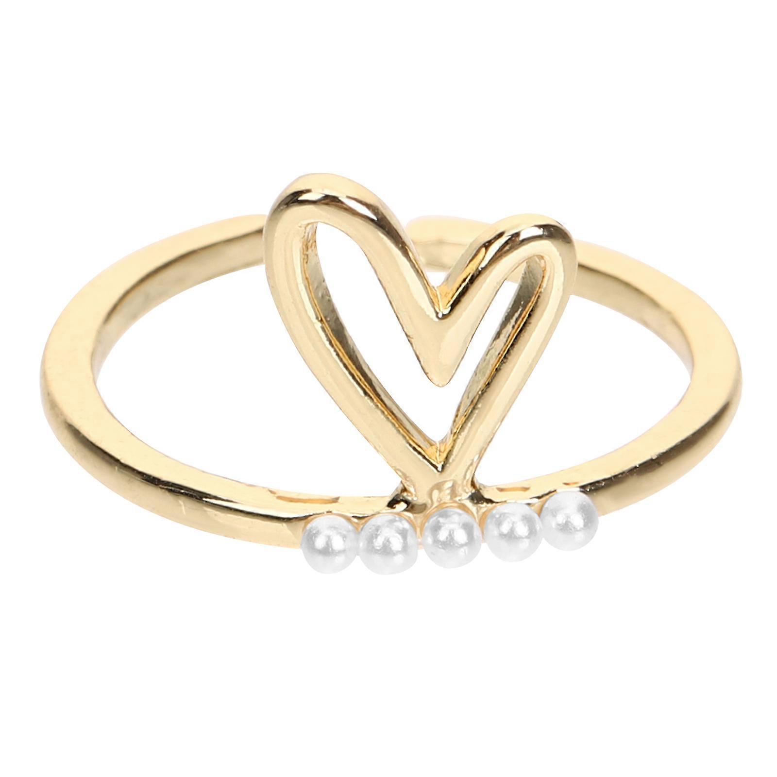Pearls Ring Heart Design Shape Retention Alloy Jewelry For Sensitive Skin Users Theme Party Chic 1Set