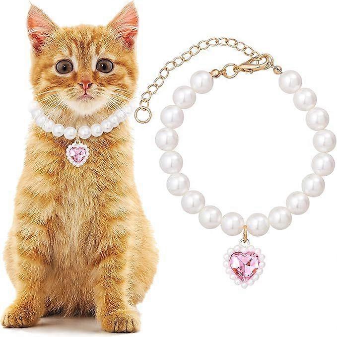 Pearl Dog Collar: Adjustable Cat And Dog Pearl Necklace With Heart Pendant Cute Pet Jewelry Accessories For Puppy Kitten Daily Wear Party