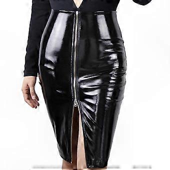 High-Waist Faux Leather Pencil Skirt with Side Zip and Slit in Red