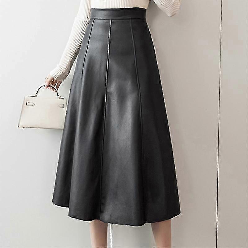 High Waist Women A Line PU Leather Patchwork Long Skirts