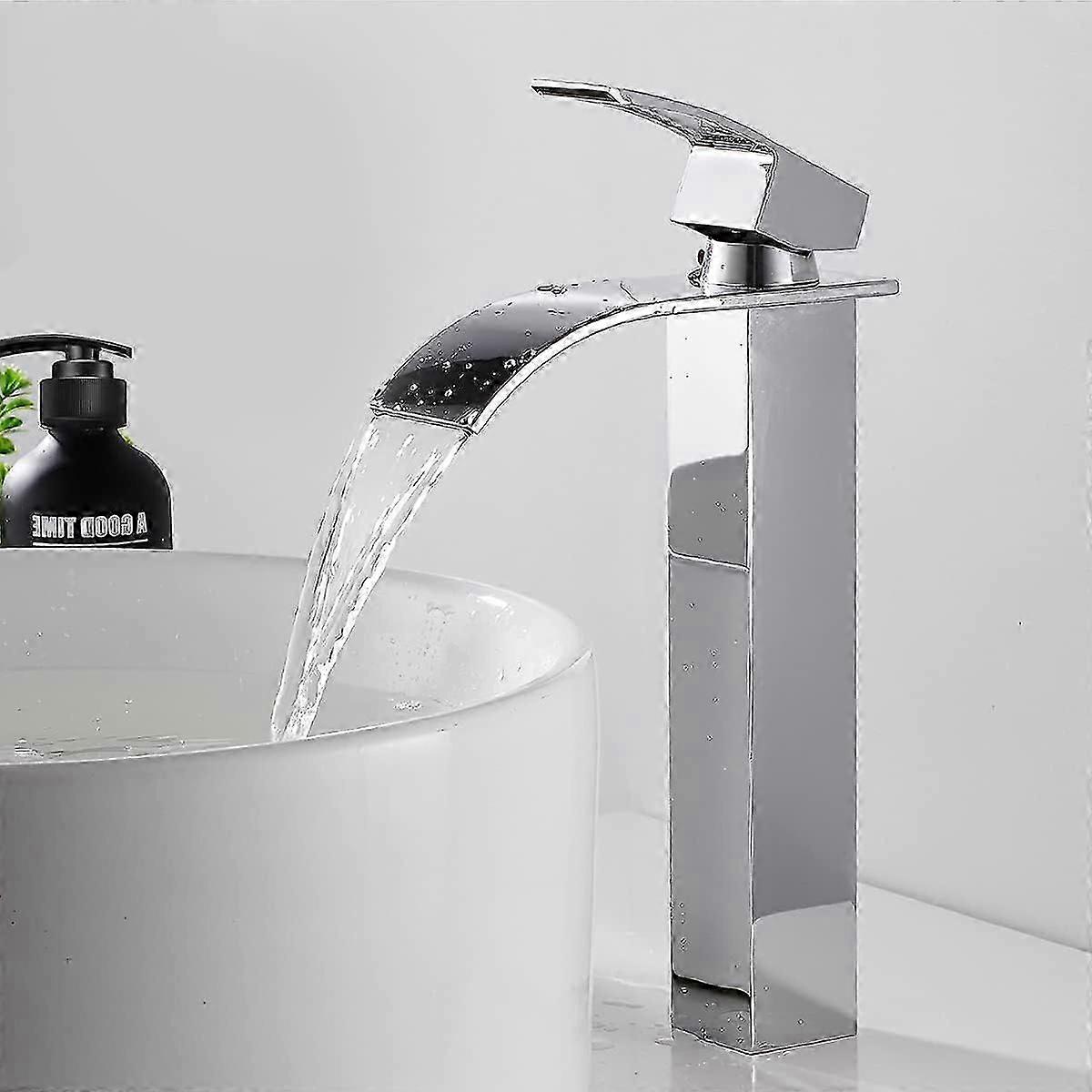 High Waterfall Bathroom Faucet Chrome Silver Mixer Mixer Basin Mixer Faucet Sus304 Stainless Steel Durable Antioxidant Elegant Design