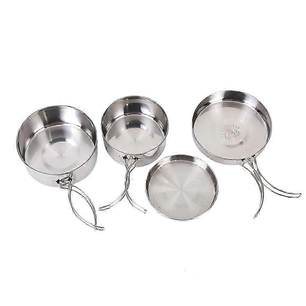 4Pcs Stainless Steel Outdoor Camping Pot Frying Pan Pot Lid for Hiking Picnic