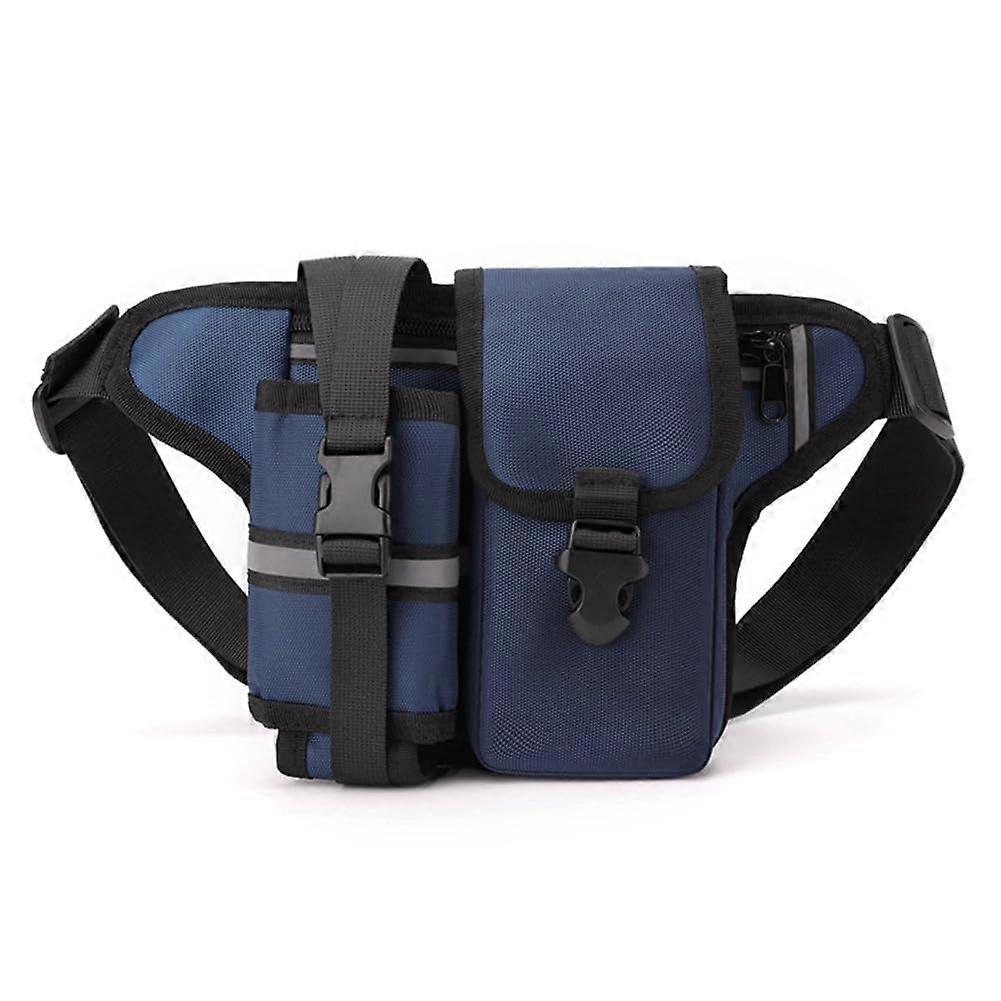 Waterproof nylon waist bag for hiking, sports fanny pack with bottle holder, phone sports belt, hip bag, dark blue