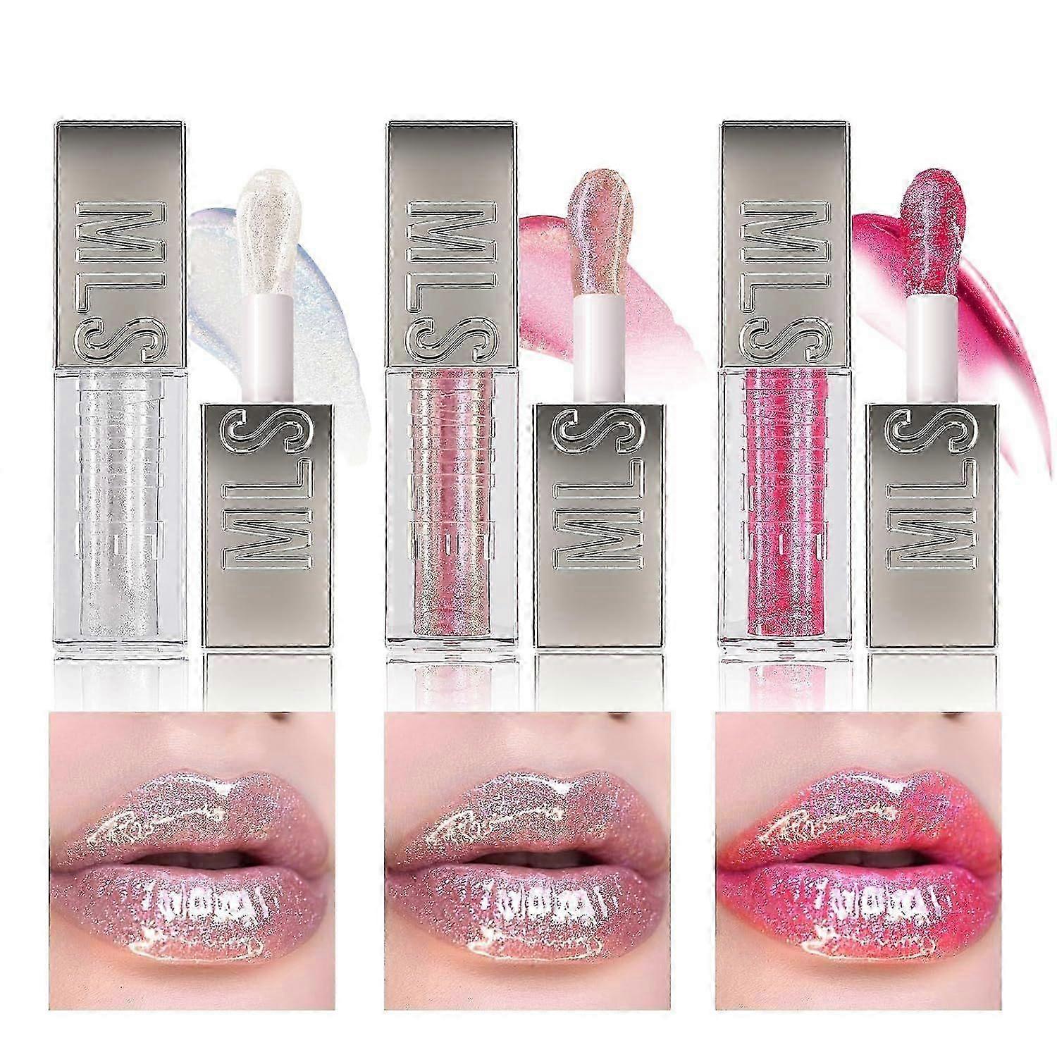 High Shine Glitter Lip Gloss,Diamond Glitter Lip Gloss Set Long Lasting Moisturizing Glossy Hydrating Lip Gloss Shimmer Liquid Lipstick For Women and