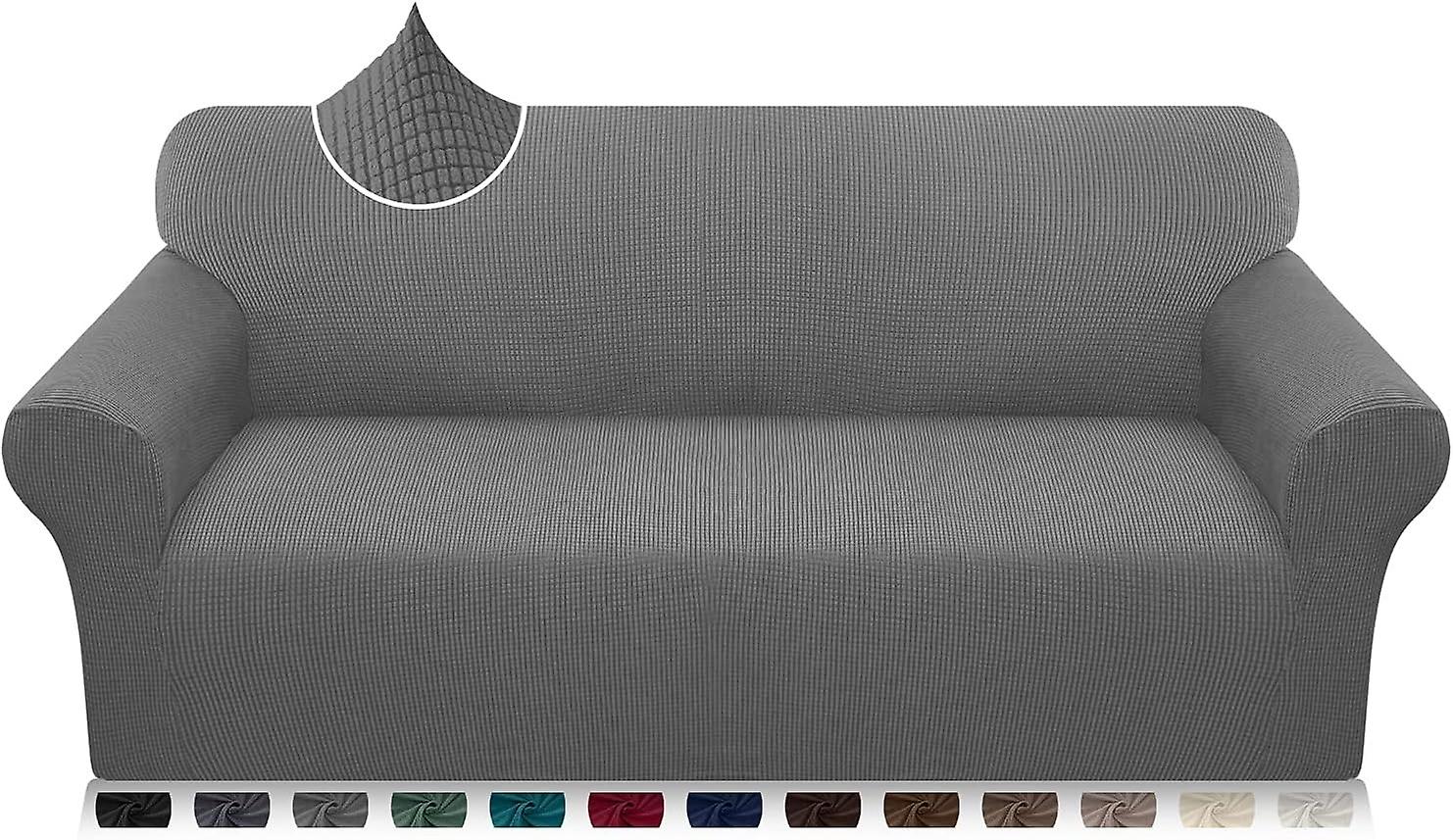About this item UNIQUE FEATURES: stretch sofa cover take advantage of polyester and spandex blend material with softly textured small checks, which perfectly combines aesthetics and practicality. Compared with ordinary sofa covers, this sofa slipcover with premium fabric is thicker, stronger and wrinkle resistant. Your sofa will look brand new with unique dyeing technology and will never fade due to the materials we have used. FIT PERFECTLY: Make sure your sofa size before purchasing, our stretch couch covers are available in 4 sizes for you to choose from. Chair cover 1 seater (76-120cm), loveseat cover 2 seater (142-178cm), sofa cover 3 seater (180-234cm), extra large sofa cover 4 seater (236-292cm). What's more,due to the high stretchy feature of our universal sofa cover, it can fit most sizes and shapes sofas like T-cushion sofa, box cushion sofa, leather sofa and so on. FURNITURE PROTECTOR: Unlike most fabrics on the market, we adopted 85% polyester 15% spandex fabric, which makes our couch slipcover more resistant to abrasion and wrinkle free. This new sofa cloth can cover the damaged area of old sofa to make it reborn and protect against stains, wear and tear, pet scratches for your sofa, loveseat or armchair. What a great choice for homes with children and pets. PREVENT SLIDING:While other stretch couch covers will slip and slide on your furniture, our magic sofa protectors can stay in place firmly without shifting even after sitting on it. Just tuck foam rollers in the gaps between sofa and seat cushions. Besides, Elastic at the bottom provides a whole coverage and keep the sofa cover tight. EASY MAINTEMANCE: Our durable sofa cover for living room will keep soft and high elasticity after repeated washing, refreshing your sofa slipcover's appearance. It is machine washable and hand washable separately in cold water on the gentle cycle . Please do not bleach or iron.